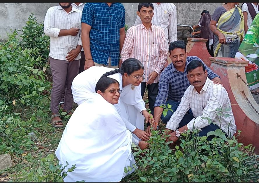 Plantation programme (300 Plants ) conducted at SLR PRATIBHA MODEL DEGREE COLLEGE,TIRUVURU in association with Brahma Kumari Samajam.templates .